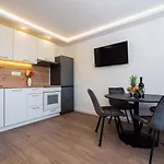 Ein Balkon und eine Sitzecke sind mit einem Flachbildfernseher mit Satellitenkanälen ausgestattet. Ein Bügeleisen/Bügelbrett und eine Klimaanlage sorgen für den Komfort der Gäste. Die Unterkunft verfügt über Parkettböden sowie schallisolierte Fenster. Dieses Apartment umfasst 1 Schlafzimmer. Es gibt 1 Badezimmer, wo eine getrennte Toilette und eine Dusche zur Verfügung stehen. Das Badezimmer ist zudem mit einem Haartrockner und Badelaken ausgestattet.